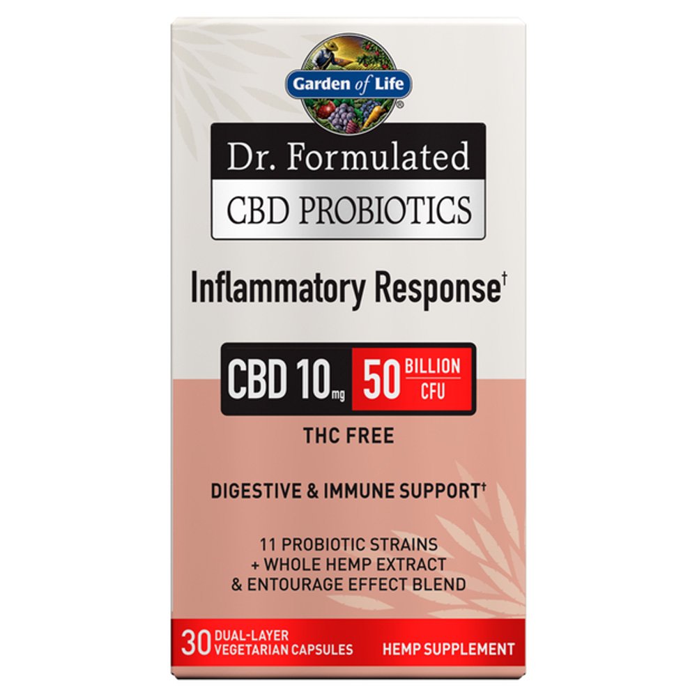 Garden of Life, CBD Probiotics, Inflammatory Response, CBD 10mg, 50 Billion CFU, THC Free, Digestive & Immune Support, 11 Probiotic Strains + Whole Help Extract & Entourage Effect Blend, 30 Dual-Layer Vegetarian Capsules, Hemp Supplement,