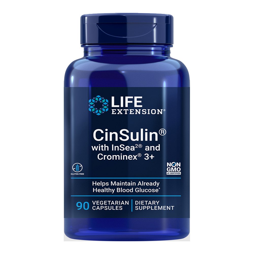 Life Extension, CinSulin with InSea and Crominex 3+, Helps Maintain Healthy Glucose for Those Already within Normal Range, 90 Vegetarian Capsules, Dietary Supplements, NON GMO