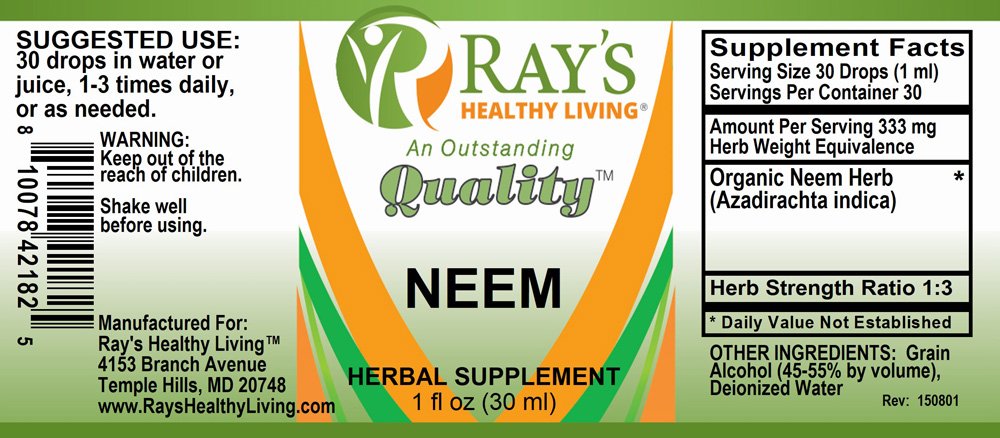 LATIN NAME: Azadirachta indica / PART USED: Herb / HARVEST: Organic. Organic Neem Herb. Other Ingredients: Grain Alcohol (45-55% by Volume), Deionized Water.